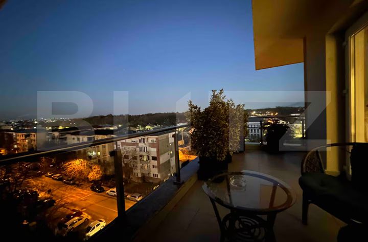 Balconul oferă o vedere superbă asupra orașului, ideal pentru seri liniștite cu un
