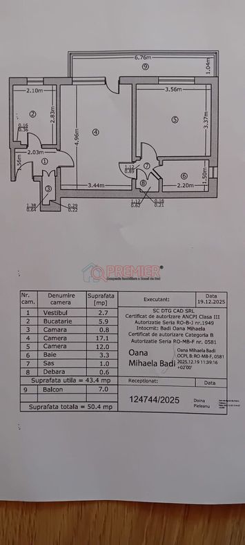 STU - SUPRAFAȚA TOTALĂ UTILĂ: 50.4 mp,SUPRAFAȚĂ TERASE/BALCOANE: 7 mp