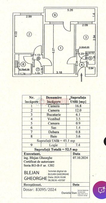 Suprafața utilă 52.5 mp