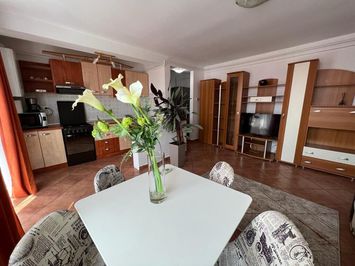 Mobilat: mobilat, Stare interior: finisat modern, Bucatarie: deschisa separata, Mobilata, Echipata, Frigider, Aragaz, Hota, Compartimentare: semi-decomandat, Usi interior: lemn masiv, Proprietarul plateste: telefon, Cablu tv, Stadiu constructie: finalizat, Structura: caramida, Strazi limitrofe: asfaltate, Orientari: sud - est