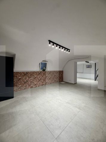 Design Modern & Recent Renovat: Spațiul a fost renovat integral cu finisaje de înaltă calitate. Designul industrial-elegant (cărămidă aparentă, iluminat tip track-light, pardoseală modernă) creează o atmosferă profesională și primitoare.