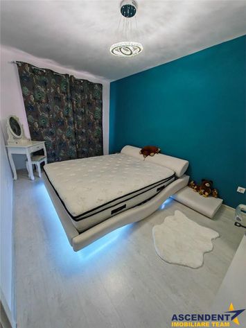 Livingul spatios este decorat cu accente elegante si dotat cu mobilier, creand un spatiu primitor si relaxant. Dormitorul aduce un plus de personalitate prin iluminarea ambientala si atmosfera intima, iar bucataria complet utilata imbina functionalitatea cu esteticul, avand fronturi moderne in contrast cromatic atractiv.