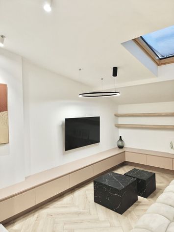 Design contemporan, ce imbina linii fluide, texturi moderne si o atmosfera calda si primitoare.