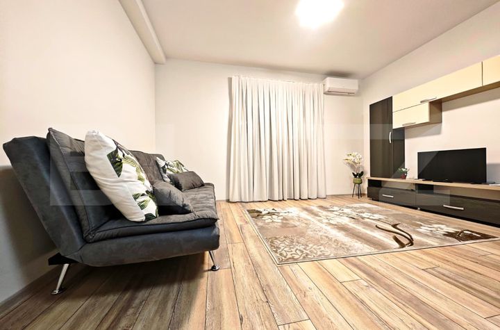 Locuința este mobilată și utilată la nivel premium: mobilier MDF cu soft-close, electrocasnice de calitate, bucătărie open-space integrată perfect în living, baie modernă cu cabină de duș spațioasă și ventilație, dormitor generos si elegant plus hol de acces. Apartamentul este ideal atât pentru locuit, cât și pentru investiție, având potențial excelent de închiriere datorită proximității față de Băile Felix. Etajul 4 asigură liniște și vedere, iar liftul elimină orice disconfort.