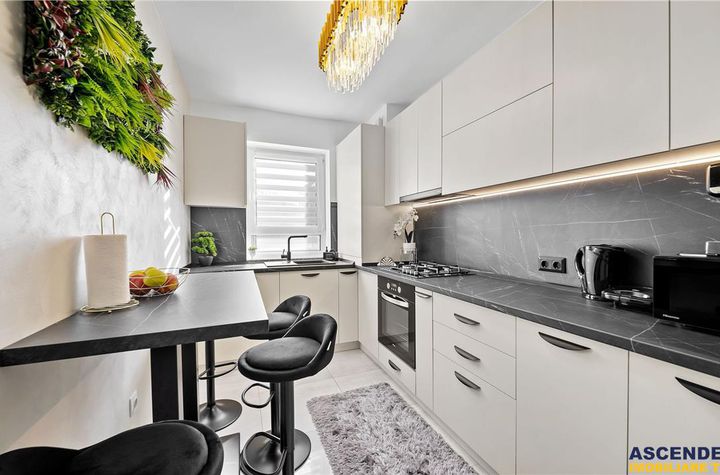 Situat la parterul unui   bloc cu 8 niveluri, elegantul apartament are o suprafata utila de51 mp, este dotat cu, tamplarie PVC cu geam tripan si o buna izolare termica, certificata prin clasa energetica B