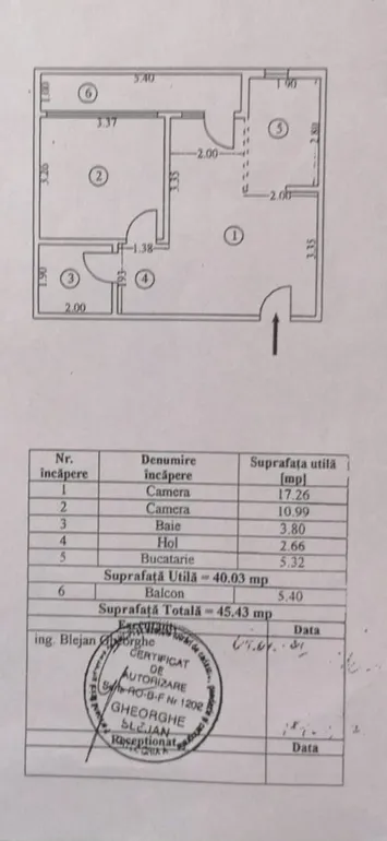 STU - SUPRAFAȚA TOTALĂ UTILĂ: 45 mp,SUPRAFAȚĂ TERASE/BALCOANE: 5 mp
