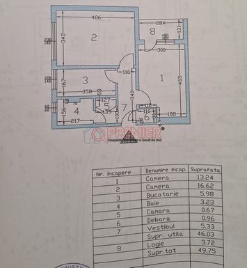 STU - SUPRAFAȚA TOTALĂ UTILĂ: 49.75 mp,SUPRAFAȚĂ TERASE/BALCOANE: 3.7 mp