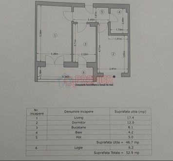 Suprafața utilă 52.9 mp