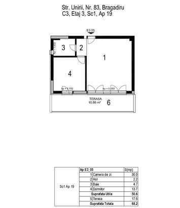 STU - SUPRAFAȚA TOTALĂ UTILĂ: 68.2 mp,SUPRAFAȚĂ TERASE/BALCOANE: 17.6 mp