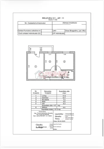 STU - SUPRAFAȚA TOTALĂ UTILĂ: 51.5 mp,SUPRAFAȚĂ TERASE/BALCOANE: 4.4 mp