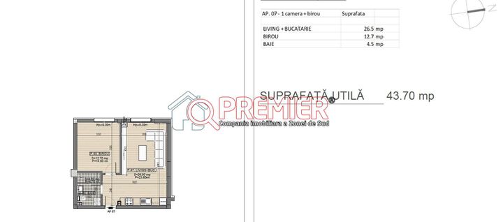 Suprafața utilă 43.7 mp