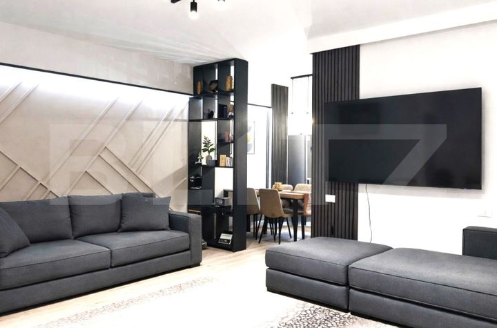 Bucătăria este nouă, complet integrată în zona de living, oferind un spațiu funcțional și aerisit. Finisajele moderne, mobilierul în tonuri neutre și iluminatul atent ales creează o atmosferă primitoare și rafinată.