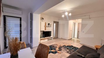 Blitz ofera spre inchiriere apartament de 2 camere, modern/lux, decomandat de 50 mp, aflat la prima inchiriere, situat la etajul 6 intr-un bloc nou cu 7 niveluri in zona Brazda lui Novac. Imobilul dispune electrocasnice noi, masina spalat, frigider , cuptor, hota, cuptor cu microunde, aer conditionat, Tv smart, centrala termica proprie pe gaz iar compartimentarea este realizata astfel: living cu balcon si bucatarie, hol, dormitor cu balcon inchis, baie. In proximitatea lui se afla gradinite, scoli, licee, magazine, restaurante. Va asteptam cu mai multe detalii la vizionare.