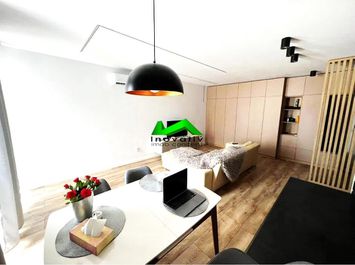 Locuinta este complet mobilata, utilata ( masina de spalat vase, aer conditionat, etc), fiind compusa din living cu bucatarie open space, dormtior, baie si balcon spatios. Aceasta se inchiriaza impreuna cu un loc de parcare subteran.