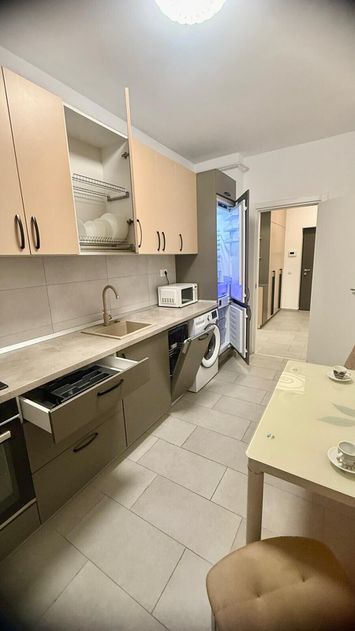 Mobilat: mobilat, Stil mobilier: modern, Stare mobilier: nou, Stare interior: nou, Bucatarie: mobilata, Echipata, Complet echipata, Frigider, Cuptor microunde, Aragaz, Cuptor electric, Hota, Masina de spalat vase, Inchisa, Compartimentare: decomandat, Vizionari: imobil liber, Alte mentiuni: nu accepta animare de companie, Vechime imobil: nou, Stadiu constructie: finalizat, Stare imobil: insalubra, Tipuri de apartamente: 2 camere, Confort: i sporit, Structura: cadre