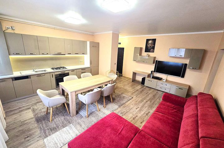 Apartamentul are o suprafață utilă totală de 54,58 mp și beneficiază de o compartimentare practică și funcțională. Accesul se face într-un hol generos, dotat cu spații de depozitare și cuier. Zona de zi este reprezentată de un living luminos, open-space cu bucătăria, complet mobilată și utilată, aceasta fiind dotată cu frigider, mașină de spălat vase, cuptor de gătit și plită pe gaz, toate încorporate în mobilier, oferind un aspect modern și un plus de confort. Dormitorul este mobilat și utilat, creând un ambient