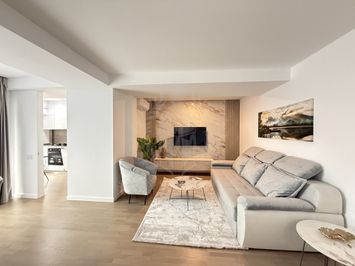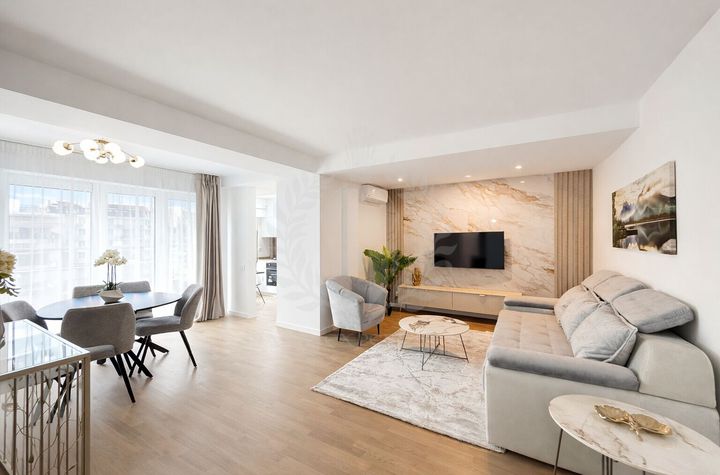 Mobilat: mobilat, Stil mobilier: modern, Stare mobilier: nou, Materiale mobilier: pal/pfl, Stare interior: nou, Renovat, Bucatarie: modern mobilata, Frigider, Plita gaz, Cuptor electric, Inchisa, Compartimentare: decomandat, Usi interior: mdf, Vizionari: imobil liber, Alte mentiuni: nu accepta animare de companie, Vechime imobil: nou, Stadiu constructie: finalizat, Stare imobil: exceptionala, Confort: i, Plansee: beton armat, Structura: cadre, Acces: acces stradal, Acces mixt, Strazi limitrofe: amenajate, Asfaltate, Orientari: sud - est, Vedere: vedere laterala