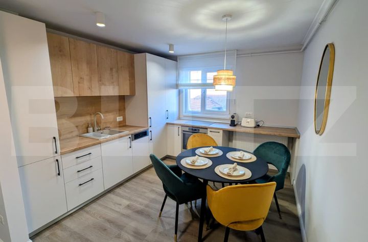 Proprietatea dispune de 2 camere și este poziționată într-un imobil izolat termic și acoperit, oferind un ambient liniștit și un confort superior. Apartamentul a fost recent renovat integral, cu o atenție deosebită la detalii, utilizând materiale premium și finisaje de înaltă clasă, ce creează un spațiu elegant și primitor.