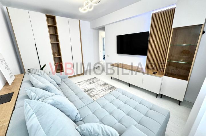 Locuința dispune de un living spațios dotat cu TV smart și canapea extensibilă, precum și de o bucătărie complet utilată, echipată cu frigider încorporat și mașină de spălat vase. Apartamentul beneficiază de centrală proprie pentru confort termic, baie cu geam pentru aerisire naturală și două balcoane care oferă spațiu suplimentar și lumină naturală.