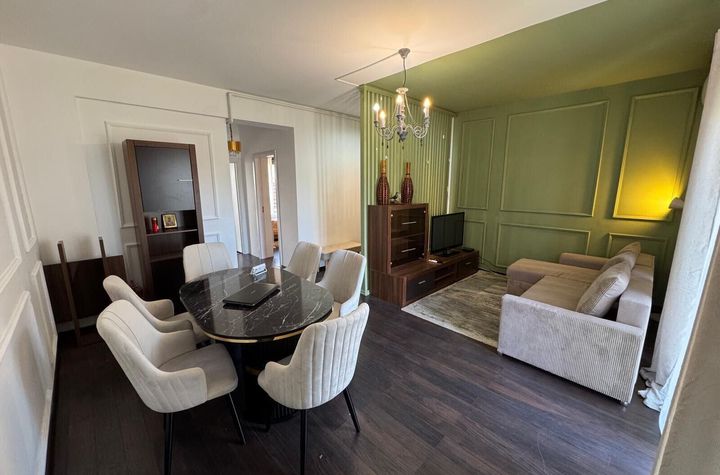 Mobilat: mobilat; mobilat lux, Stare interior: finisat modern, Bucatarie: frigider, Aragaz, Hota, Masina de spalat vase, Compartimentare: decomandat, Usi interior: lemn masiv, Proprietarul plateste: telefon, Cablu tv, Curte: comuna, Stadiu constructie: finalizat, Structura: beton, Strazi limitrofe: asfaltate