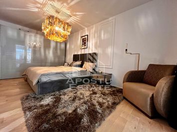 Mobilat: mobilat; mobilat lux, Stare interior: ultrafinisat, Bucatarie: deschisa separata, Mobilata, Echipata, Frigider, Aragaz, Hota, Masina de spalat vase, Compartimentare: decomandat, Usi interior: mdf, Proprietarul plateste: telefon, Cablu tv, Stadiu constructie: finalizat, Strazi limitrofe: asfaltate, Vedere: vedere spre oraș