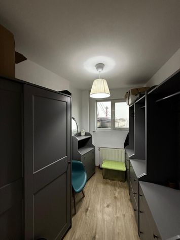 Compartimentare este practica si functionala fiind compusa din: hol cu spatiu pentru depozitare, dressing/birou, living luminos, dormitor separat, bucatarie inchisa complet utilata, baie cu cada si geam