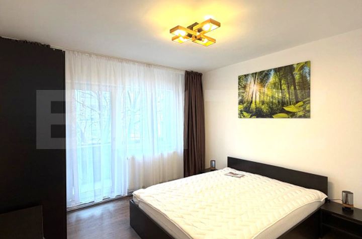 De inchiriat apartament cu 2 camere, situat in cartierul Intre Lacuri, zona strazii Dionisie Roman. Este pozitionat la etajul 1 din cele 4 nivele ale imobilului si dispune de o suprafata utila de 50 mp. Compartimentarea este decomandata apartamentul fiind compus din: 2 camere, bucatarie, hol, baie si 2 balcoane deschise insa acoperite. Finisajele si mobilierul sunt noi, apartamentul fiind renovat complet, aflandu-se la prima inchiriere dupa vizionare.