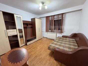 Apartamentul este cu mobilier din lemn masiv, funcțional, potrivit pentru cei care caută o locuință practică, într-o zonă