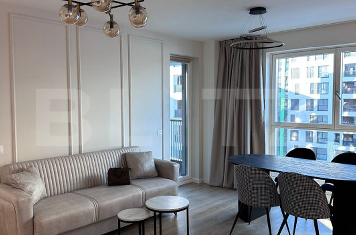 Mobilat și finisat în stil modern, apartamentul dispune de toate dotările necesare: combina frigorifică, cuptor electric, plită, hotă, mașină de spălat rufe și vase, aer condiționat. Siguranța este asigurată de ușa antiefracție, ferestrele cu tamplarie PVC și geamuri termopan, iar confortul termic vine de la centrala termică proprie, distribuită prin pardoseală și cu repartitoare în fiecare cameră.