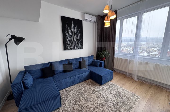 Blitz vă propune spre închiriere un apartament boutique de 60 mp utili, situat la etajul 4 din 4 al unui imobil modern, construit după anul 2000, poziționat pe colț, cu lift și supraveghere video, în zona Iris. Beneficiază de lumină naturală dinspre nord și răsărit, panoramă deschisă către cartier și fără vecini deasupra, oferind liniște și intimitate.