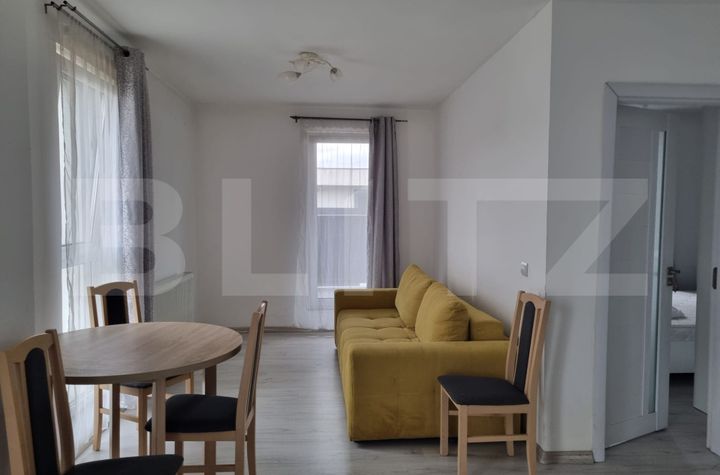 Apartamentul are o compartimentare moderna, fiind compus din living cu bucatarie open space, dormitor, baie, la care se adauga o terasa generoasa cu aprox. 10mp. Acesta se afla la etajul retras unui bloc nou, finalizat in 2023. Apartamentul se preda mobilat si utilat complet. Este dotat cu centrala termica proprie, incalzire prin calorifere, usa metalica la intrare.