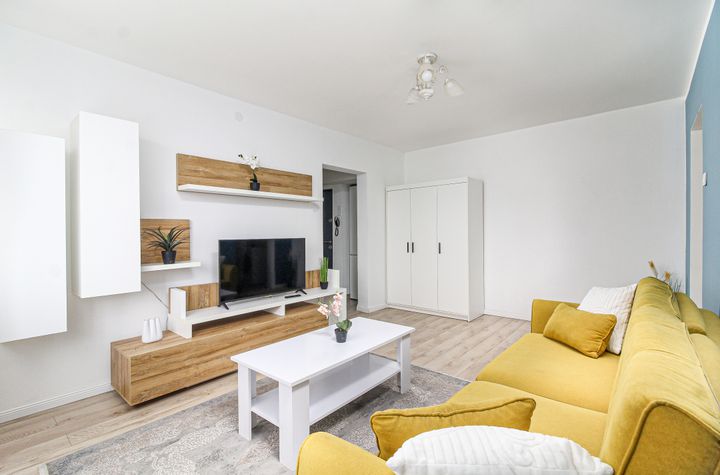 Apartamentul se remarca printr-o compartimentare eficienta, fiind alcatuit dintr-un living luminos, un dormitor primitor, bucatarie separata, baie cu geam si un balcon inchis. Orientarea estica aduce lumina naturala placuta in prima parte a zilei, creand o atmosfera calda si confortabila in interiorul locuintei.