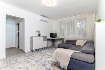 Apartamentul a fost renovat complet in 2021, cand au fost refacute integral toate instalatiile electrice si sanitare, canalizarea, peretii si finisajele, si a fost mobilat si utilat complet. Se vinde exact ca in fotografii, incluzand mobilierul si electrocasnicele: masina de uscat rufe, masina de spalat vase, aer conditionat, TV smart din dormitor, frigider, aragaz, cuptor, hota si masina de spalat rufe, mai putin televizorul din living si patul din dormitor. Beneficiaza de centrala termica de bloc, ferestre termopan cu rulouri, usa metalica si o orientare vestica, ce ofera lumina naturala in a doua parte a zilei.