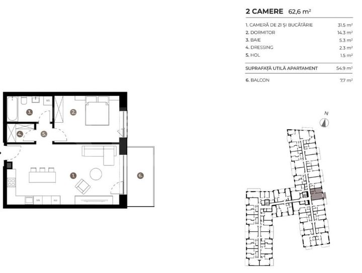 Suprafața utilă 55 mp