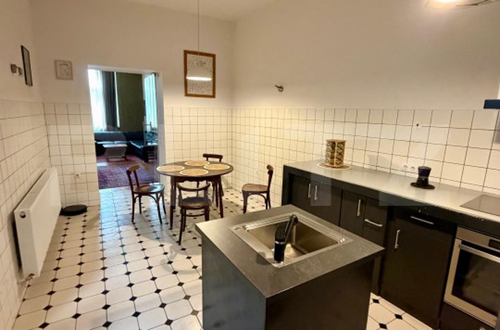 Apartamentul este pozitionat la 1 unui imobil (monument istoric) cu 2 niveluri si dispune de o suprafata utila de 71 mp si tavan inalt de 3,30 m. Compartimentarea apartamentului este semidecomandata, gandita astfel: hol, bucatarie, living generos, baie cu incalzire in pardoseala si geam, dormitor. Beneficiaza de masina de spalat vase, centrala termica proprie, geamuri termopan cu tamplarie din PVC si usa metalica la intrare. Se ofera spre vanzare complet mobilat si este inclus un garaj in curte.