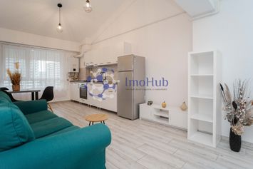 Mobilat: mobilat, Stil mobilier: modern, Stare mobilier: nou, Materiale mobilier: pal/pfl, Stare interior: nou, Bucatarie: deschisa inclusa in living, Modern mobilata, Complet echipata, Frigider, Plita gaz, Cuptor electric, Hota, Compartimentare: open space, Usi interior: mdf, Contract inchiriere: inchiriat pe 1 an, Vizionari: imobil liber, Vechime imobil: nou, Stadiu constructie: finalizat, Stare imobil: exceptionala, Confort: i sporit, Structura: cadre, Fundatie: cu ziduri (beton turnat), Acces: acces stradal, Strazi limitrofe: amenajate, 2 benzi, Vedere: vedere laterala