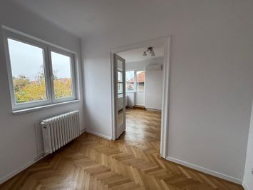 STU - SUPRAFAȚA TOTALĂ UTILĂ: 60 mp,Se inchiriaza un apartament cu doua camere situat la etajul 2 al unei vile cu regimul de inaltime P+2, in cartierul Cotroceni. Imobilul a fost construit in anul 1940 si se afla intr-o stare buna. Este pozitionat in vecinatatea Arenelor BNR, aproape de statia de metrou Eroilor si Parcul Romniceanu, intr-o zona unde gasim numeroase cafenele si pub-uri. In proximitate se afla Biserica Elefterie, Facultatea de Medicina si Piata Cotroceni. Apartamentul are o suprafata utila totala de 60mp, e semidecomandat si foarte luminos. Se compune din doua camere, bucatarie separata, baie cu dus si toaleta de serviciu, ambele cu aerisire naturala si un balcon deschis de 14mp. Locuinta a fost renovata de curand si, cu exceptia bucatariei, se preda nemobilata. Este dotata cu parchet din lemn masiv, ferestre cu geam termopan, centrala termica proprie si aparat de aer conditionat. Bucataria este echipata cu electrocasnice precum plita, cuptorul si frigiderul. Apartamentul se preteaza doar pentru activitatea unei firme cu trafic redus. Nu este disponibil pentru rezidenta.