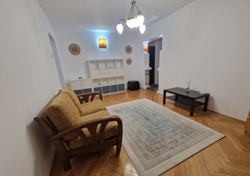 Va prezentam spre inchiriere un apartament cu 2 camere, situat la etajul 3 al unui imobil cu 4 niveluri, in cartierul Cotroceni. Blocul a fost construit in anul 1960, este solid si nu prezinta risc seismic. Se afla intr-o zona foarte buna a cartierului, in vecinatatea Palatului Cotroceni. La doi pasi gasim Parcul Romniceanu, piata, Mega Image, iar la cateva minute se afla statia de metrou Academia Militara. Totodata, in proximitate sunt Facultatea de Medicina si Facultatea de Psihologie. Apartamentul are o suprafata utila de 51mp si se compune dintr-un living luminos, dormitor matrimonial, bucatarie cu acces la un balcon inchis si baie. Locuinta este dotata cu parchet din lemn masiv, ferestre cu geam termopan si finisaje de calitate. Nu exista probleme cu incalzirea, iar costurile pentru intretinere sunt reduse. Se inchiriaza complet mobilata si echipata cu electrocasnice precum frigiderul, aragazul, masina de spalat rufe si televizorul. Poate fi un spatiu potrivit pentru un cuplu.