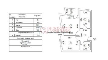 STU - SUPRAFAȚA TOTALĂ UTILĂ: 50.3 mp,SUPRAFAȚĂ TERASE/BALCOANE: 3.8 mp