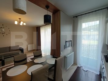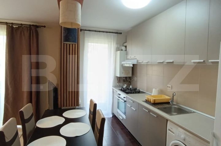 Apartamentul se preda complet mobilat si utilat, este amplasat intr-un bloc din caramida izolat termic la exterior, are o suprafata utila de 51 mp, dispune de centrala termica proprie, tampalrie PVC cu geam termopan si este compus din: hol, living cu bucatarie open space, dormitor, baie si 2 balcoane. Disponibil de la 1 Februarie.
