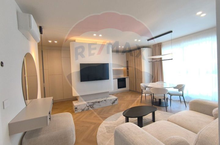 Apartamentul dispune de centrala termica proprie, incalzire prin pardoseala, aparat de aer conditionat, mobilier si electrocasnice noi, precum si de spatii generoase de depozitare.
