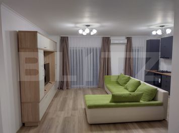 Apartamentul are o suprafață generoasă de 60 mp și este compartimentat astfel: hol, living cu bucătărie open-space, un dormitor spațios și o baie modern amenajată. Se închiriază complet mobilat și utilat, cu electrocasnice moderne