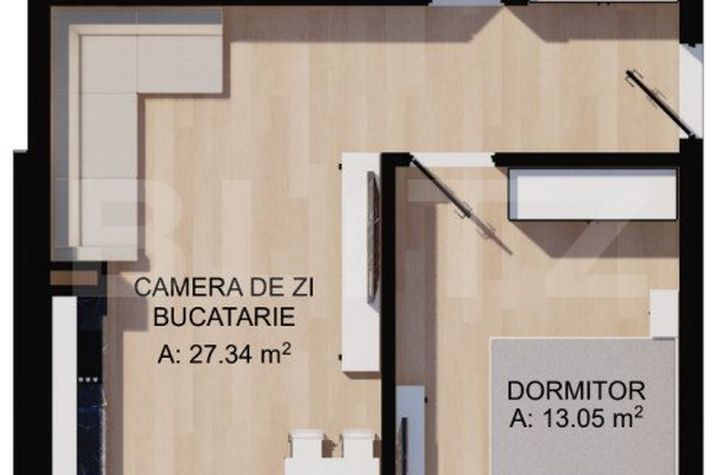 BLITZ va propune spre vanzare un apartament de 2 camere aflat intr-un ansamblu rezidential din zona Centrala. Ansamblul se distinge prin pozitionare, aspect, calitatea materialelor folosite si parc propriu de 1200mp. Apartamentul este situat la etajul 1 al unui imobil structurat pe 4 niveluri cu lift, avand o suprafata utila de 47.02 mp. Acesta este compartimentat astfel: dormitor, living open-space cu bucatarie, baie si balcon de 10mp.