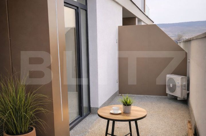 Blitz vă prezintă un apartament premium, complet mobilat și utilat, situat într-un imobil nou, finalizat în 2025, într-o zonă cu acces rapid către mijloacele de transport în comun.