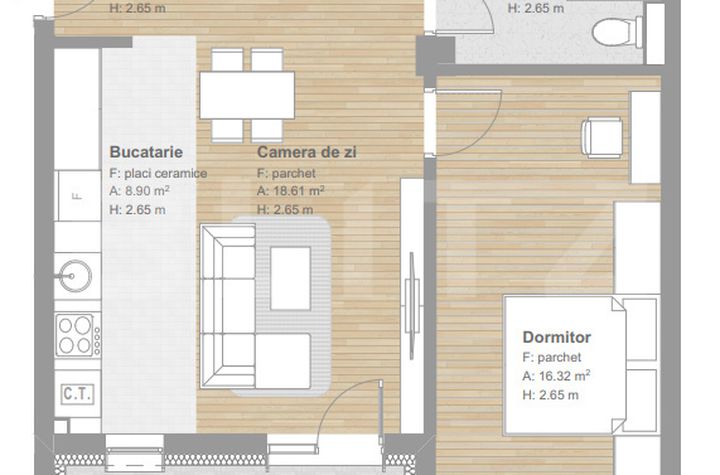 Compartimentare semidecomandata living open space cu bucatarie, dormitor, baie plus balcon. Dotările includ: Centrală termică și încălzire în pardoseală pentru confort termic optim. Ușă de exterior antiefracție, cu izolare fonică, asigurând un mediu sigur și liniștit în interior. Finisaje premium, inclusiv parchet SPC, băi moderne cu WC încastrat, cadă sau duș step in, cu o gamă variată de culori la alegere, pentru a personaliza spațiul conform preferințelor. Sistem de interfon/videointerfon pentru acces securizat în clădire.