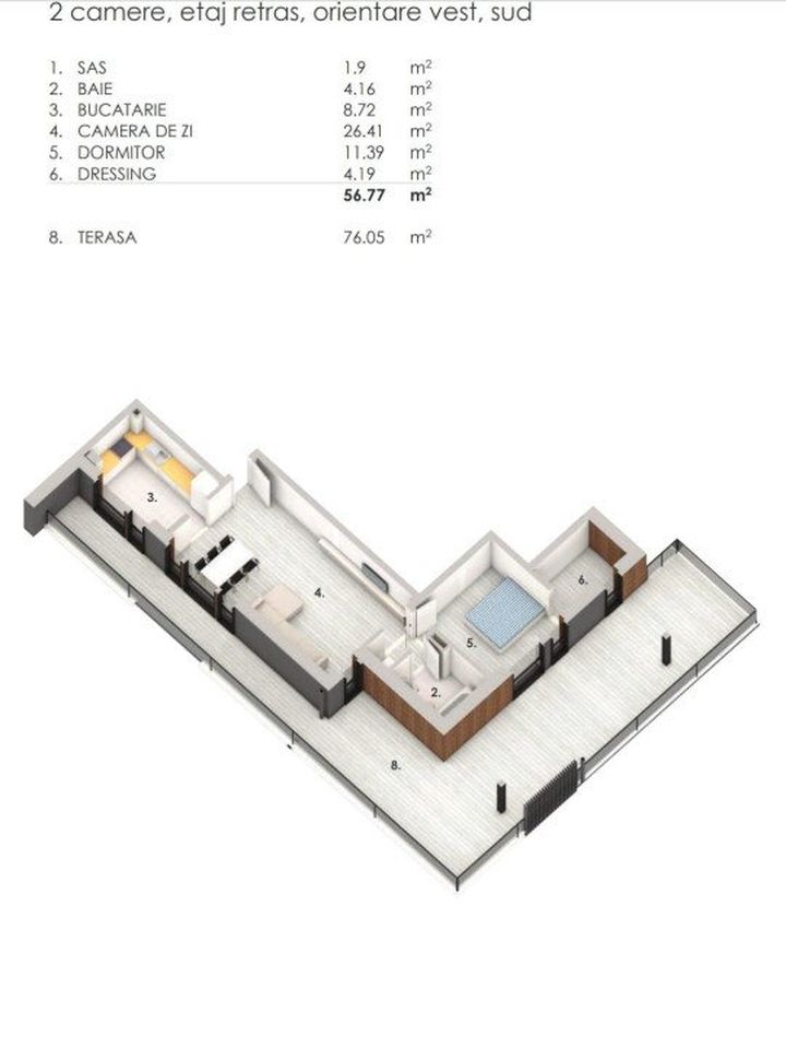 Blitz ofera spre vanzare apartament de 2 camere decomandate cu o suprafata de 57 mp plus o terasa fabuloasa de 76mp. Apartamentul este situat la etajul 2 al unui imobil de doua etaje din zona strazii Somesului din Floresti, se va vinde finisat (mai putin baia) cu materiale de calitate, dispune de incalzire in pardoseala, o termoizolare premium si este compartimentat astfel: hol, bucatarie, living, un dormitor, dressing, baie, terasa. Locul de parcare exterior se vinde cu 5000 de euro
