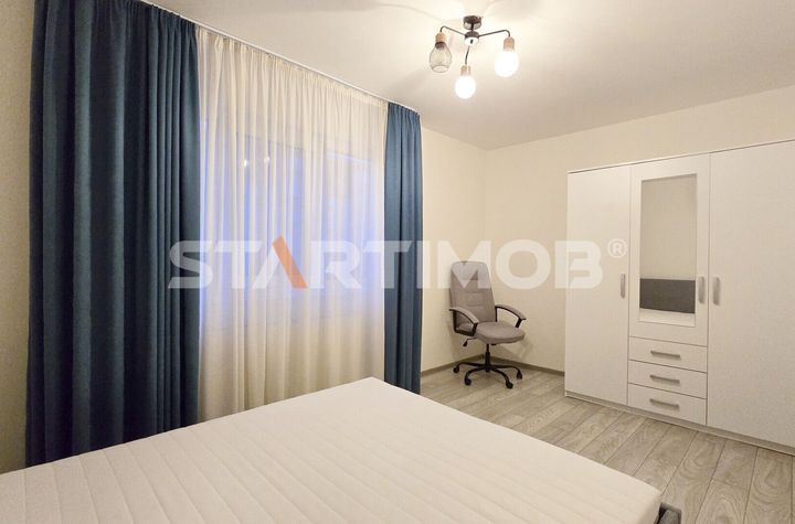 Apartamentul este insorit avand o pozitionare sudica, dispune de finisaje de tip parchet, tamplarie PVC cu geam termopan, gresie si faianta, incalzirea cu centrala termica proprie, iar printre dotari amintim masina de spalat automata Electrolux, masina de spalat vase Bosch, combina frigorifica Arctic, aragaz cu cuptor marca Electrolux, cuptor cu microunde Heinher, canapea extensibila in living cat si pat dublu in dormitor, dulap tip dressing, etc .