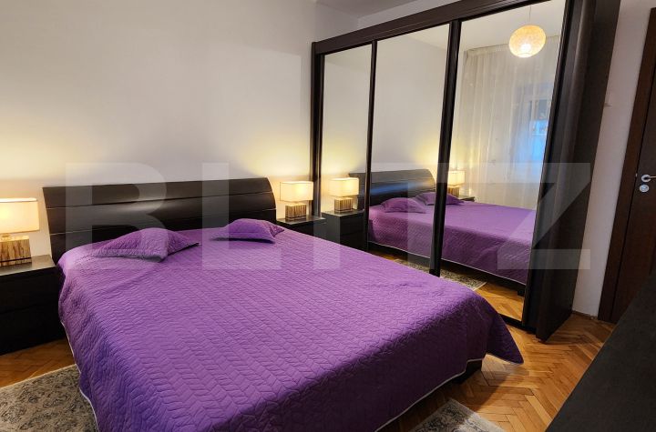 Apartamentul este complet mobilat si utilat, pregatit de mutarea imediata fiind dotat cu centrala termica, aparat de aer condionat, TV, frigider, aragaz, hota, masina de spalat rufe, cuptor cu microunde, cafetiera, prajitor de paine.