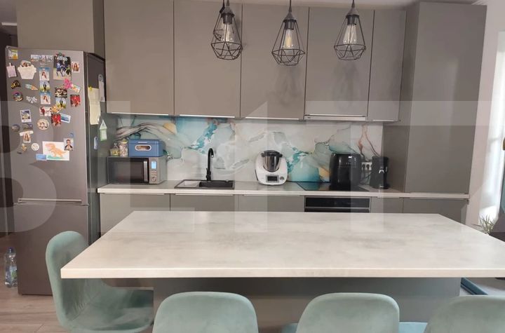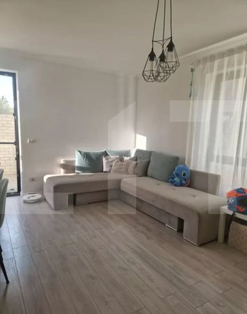 La intrare vă întâmpină livingul spațios, luminos, cu acces direct către bucătăria open space, complet utilata si mobilata.