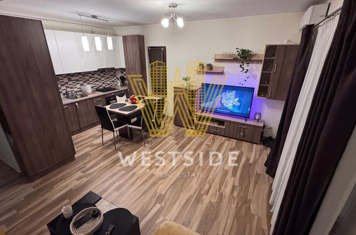 Mobilat: mobilat, Stil mobilier: modern, Stare mobilier: nou, Materiale mobilier: lemn masiv, Stare interior: nou, Bucatarie: deschisa inclusa in living, Modern mobilata, Echipata, Frigider, Plita electrica, Cuptor electric, Hota, Compartimentare: decomandat, Usi interior: lemn masiv, Vizionari: imobil liber, Vechime imobil: nou, Stare imobil: exceptionala, Tipuri de apartamente: 2 camere, Confort: i sporit, Acces: acces stradal, Strazi limitrofe: amenajate, Vedere: vedere mixta